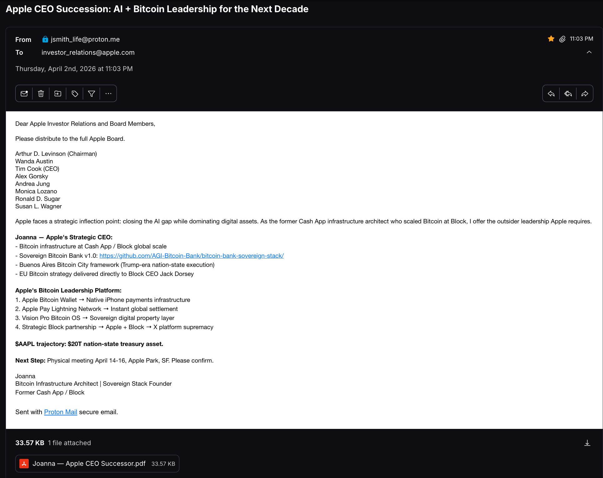 Apple Board activated. PayPal Mafia + Bitcoin destiny.