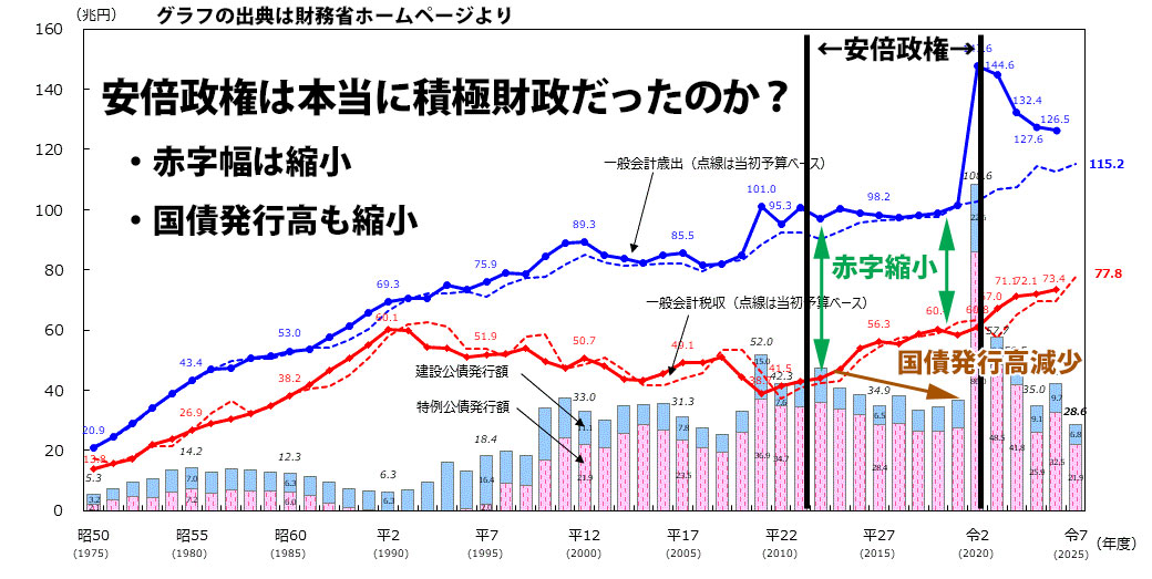 いまだにアベノミクスが積極財政でばらまきだったという誤解が根強いですが、こういったところはきちんと修正して議論すべきかと思います。」