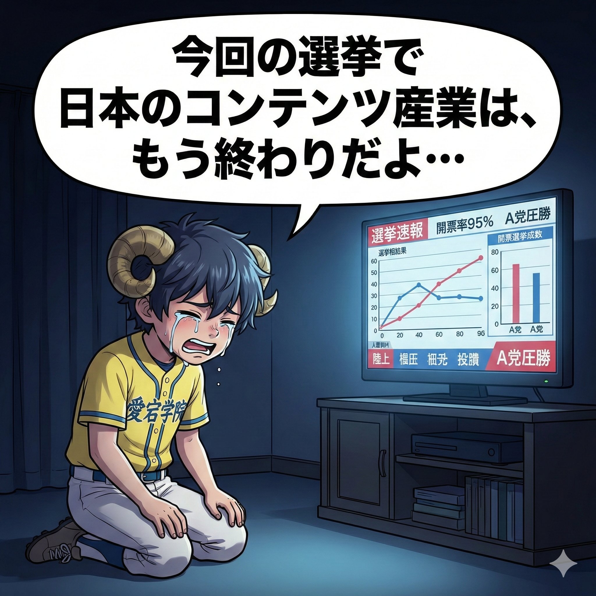 「反AIの人が支持してた政党は今回ほとんど負けた。圧勝した高市政権と自民党はAIをバリバリ推進していくし、AIをガチ推ししてたチームみらいはめちゃくちゃ躍進してたやん。つまり政治的にはAI推進に決まったってこと。