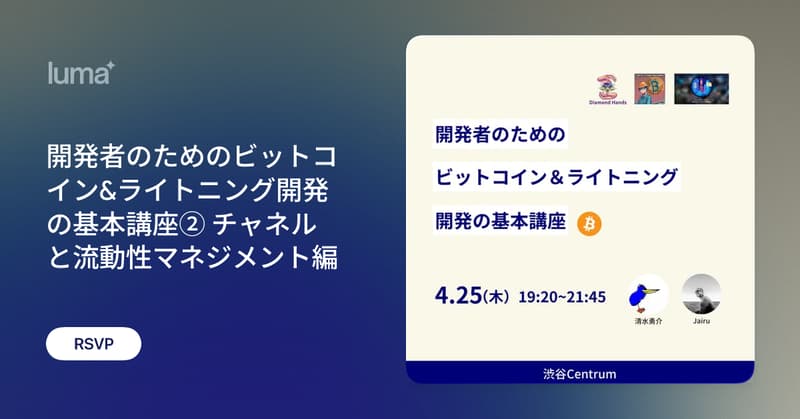 開発者のためのビットコイン&ライトニング開発の基本講座② チャネルと流動性マネジメント編 · Luma