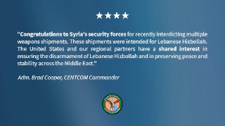 "โ ๐บ๐ธ/๐ฎ๐ฑ/๐ธ๐พ U.S. CENTCOM Commander Admiral Brad Cooper thanks Syria for protecting Israel. "
