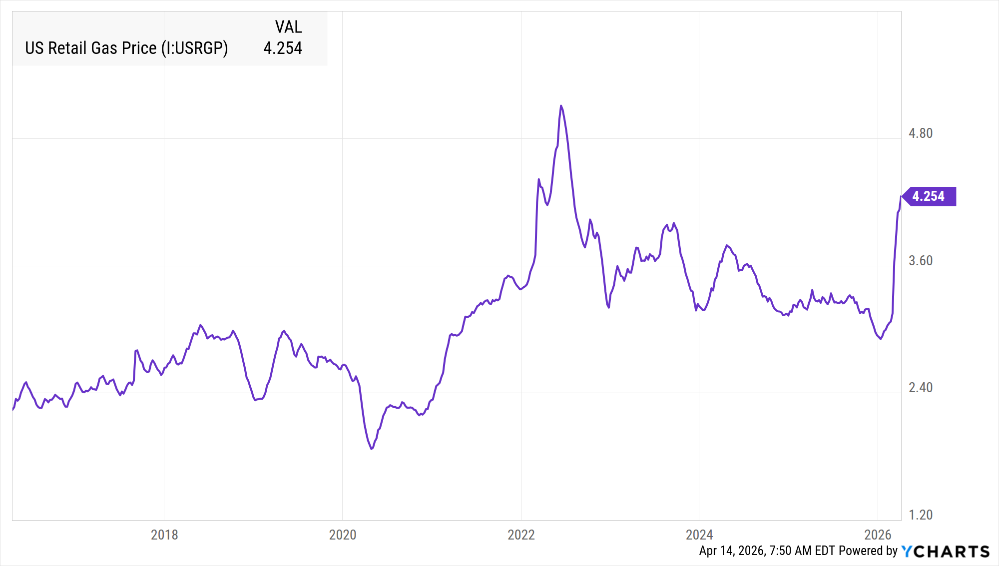 View weekly updates and historical trends for US Retail Gas Price. from United States. Source: Energy Information Administration. Track economic da...