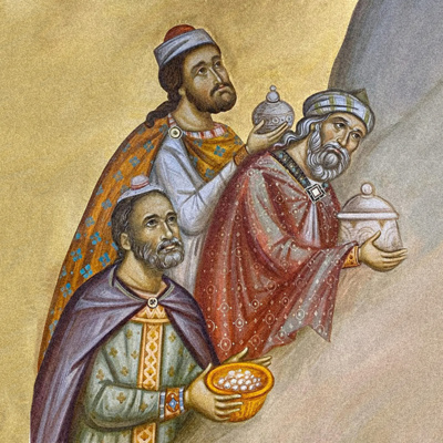 The forty days of the Nativity fast is an image of the fast of Moses, who having fasted for forty days and forty nights, received the words of God inscribed on stone tablets. But having fasted for forty days, we gaze upon and receive the living Word from the Virgin, inscribed not on stones, but incarnate and born, and we partake of His Divine Flesh