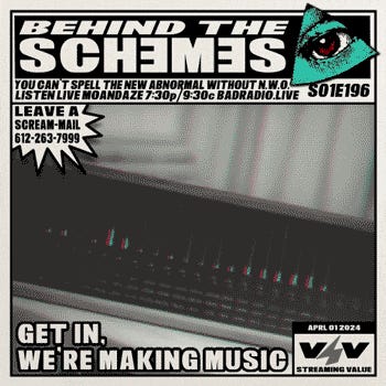 Behind The Sch3m3s is LIVƎ today with @lavish @boobury after No Agenda!