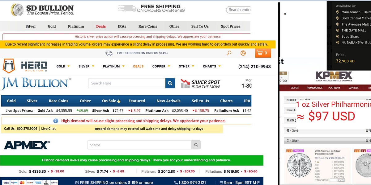 Silver at $130 in Japan, $106 in Kuwait, $97 in Korea, and “$71” on Western screens is not a market; it is a confession.