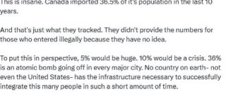 This is INSANE. Canada imported 36.5% of its population in the last 10 years.