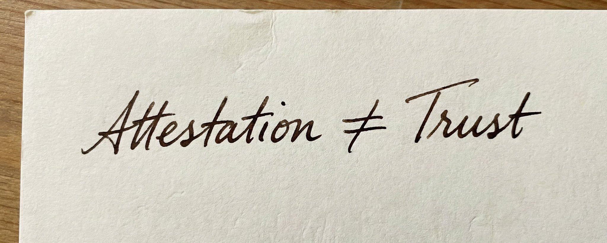 matevz 3 weeks ago Attestation isn't enough for trust X (formerly Twitter)ptrus (@peterus) on XAttestation ≠ Trust