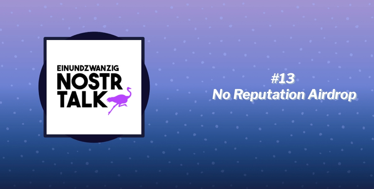 Einundzwanzig, der Bitcoin Podcast β’ NostrTalk #13 - No Reputation Airdrop β’ Listen on Fountain