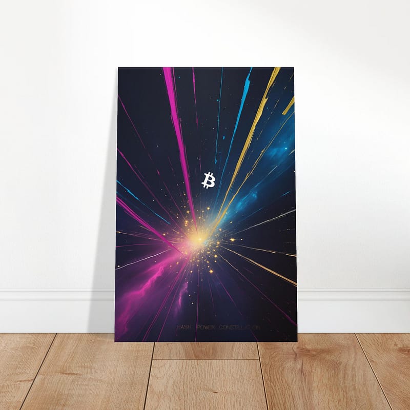 Premium bitcoin art — Decentralized Cosmic Power B. Museum-grade giclée canvas. Bitcoin gift for crypto investors. Free shipping.