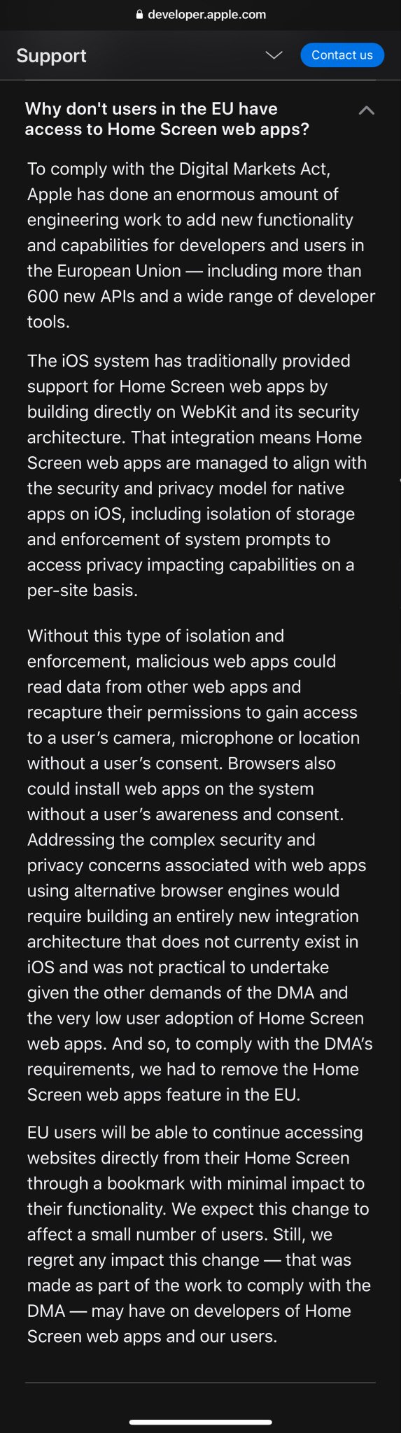 It's official. iOS will not support Progressive Web Apps in the EU.