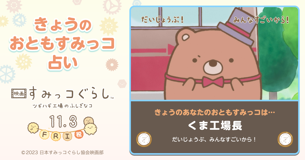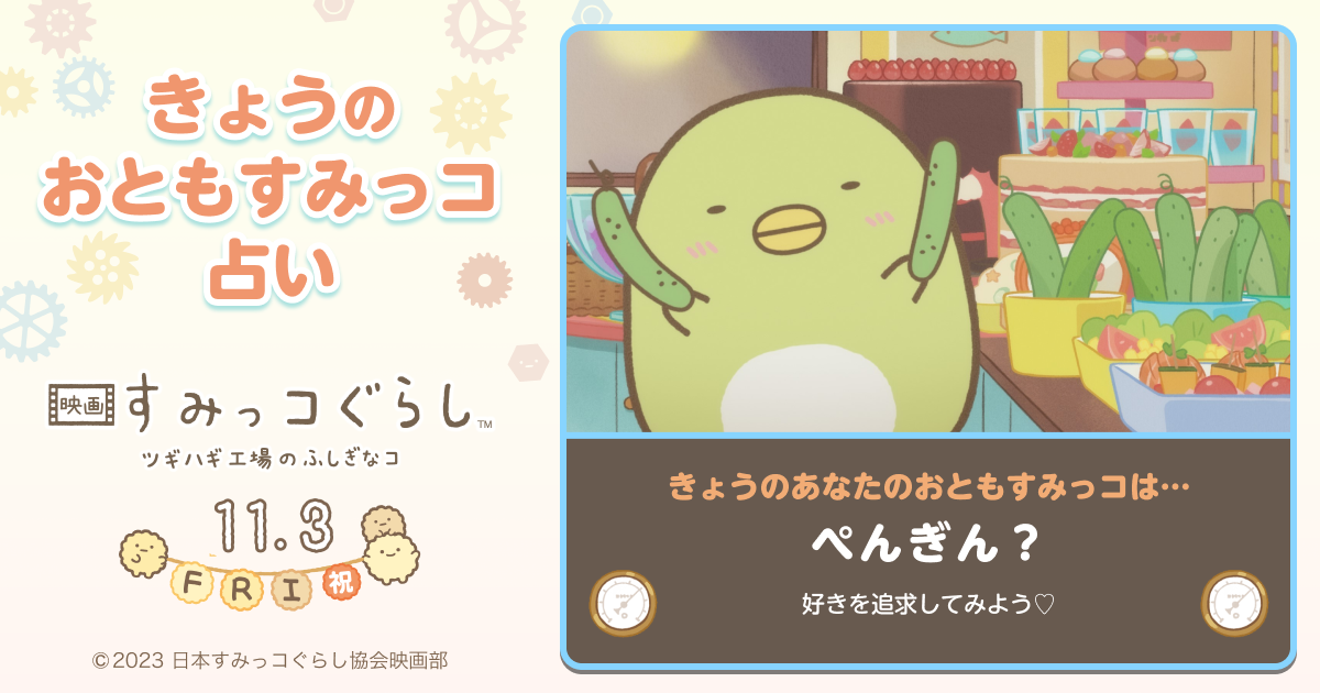 『#映画すみっコぐらし ツギハギ工場のふしぎなコ』11/3(金・祝)ロードショー! #おともすみっコ占い