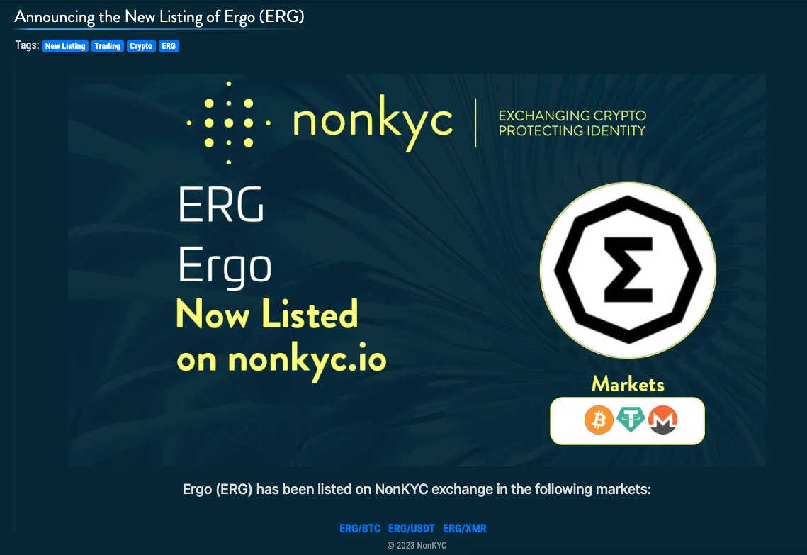 RT @nonkyc_exchange: @Ergo_Platform Ergo $ERG #ERG