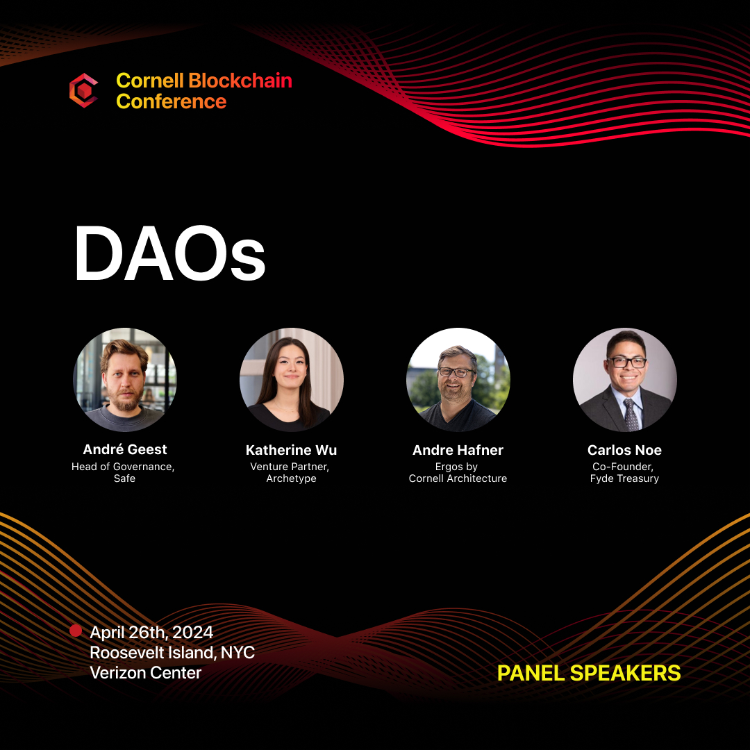 Ready to get down with #DAOs at Cornell Blockchain Conference? Join us this April 26 for conversations on the future of governance, with: