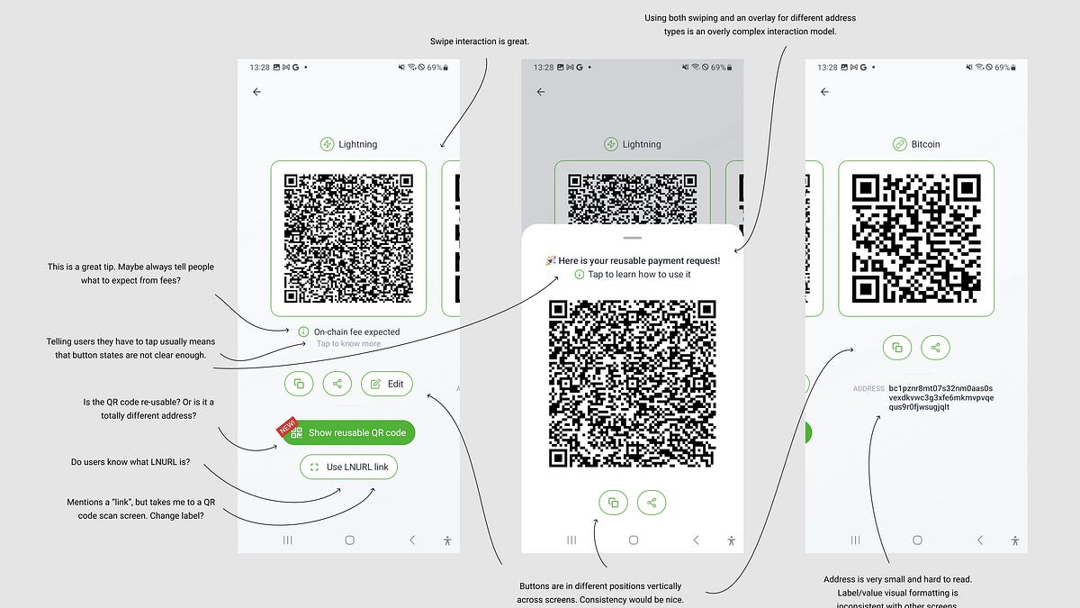 It's a little tricky to tame the various payment request formats in receive screens into a coherent experience, they are just so different. Here's a rough stab at it.