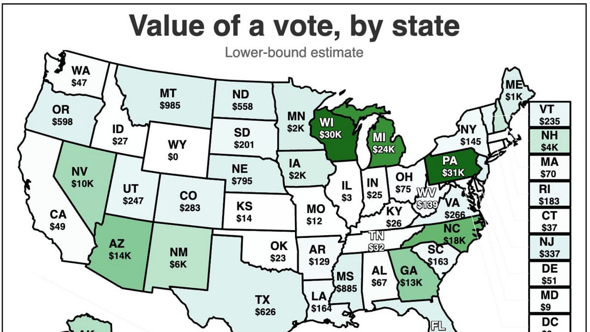- PA votes being 400x more valuable than OH votes is bonkers