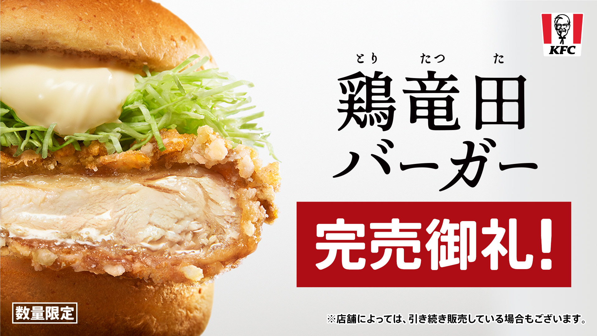 hogusource 2 months ago どうも、食べずに終わりました。 X (formerly Twitter)ケンタッキーフライドチキン🍗 (@KFC_jp) on X/ #ケンタの鶏竜田バーガー 大好評につき販売終了 \ 想像を超える反響をいただき、 早期終売となりまし...