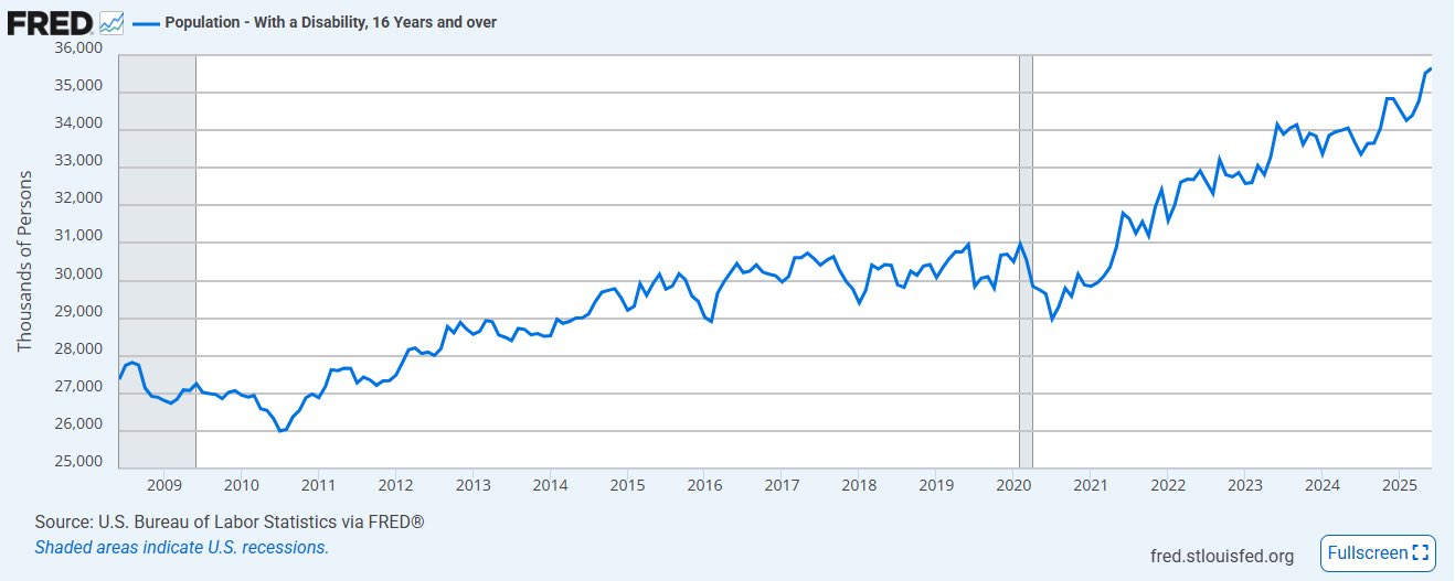 🚨🚨US disabilities from Bureau of Labor Statistics broke out to another new high in June adding 138k onto May’s 739k. This is a monthly surv...