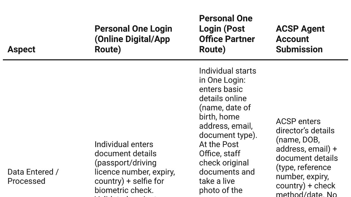 Mapping the ACSP, One Login, and Post Office routes The risks of centralised records and function creep into a mandatory national digital ID system