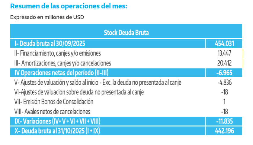 Cuarto, contabilices el déficit como lo contabilices, la deuda pública de la Administración Central argentina volvió a caer en octubre en términos absolutos (no digamos ya en términos de PIB, que es como tú siempre dices que hay que "medirlo").