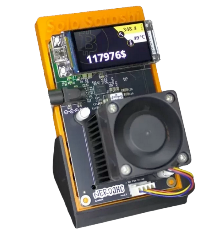 Buy the Nerdaxe Gamma Bitcoin Solo Miner. 1.2 TH/s on 18W, BM1370 ASIC, color LCD display. 90-day warranty, same-day shipping from Houston. Shop So...