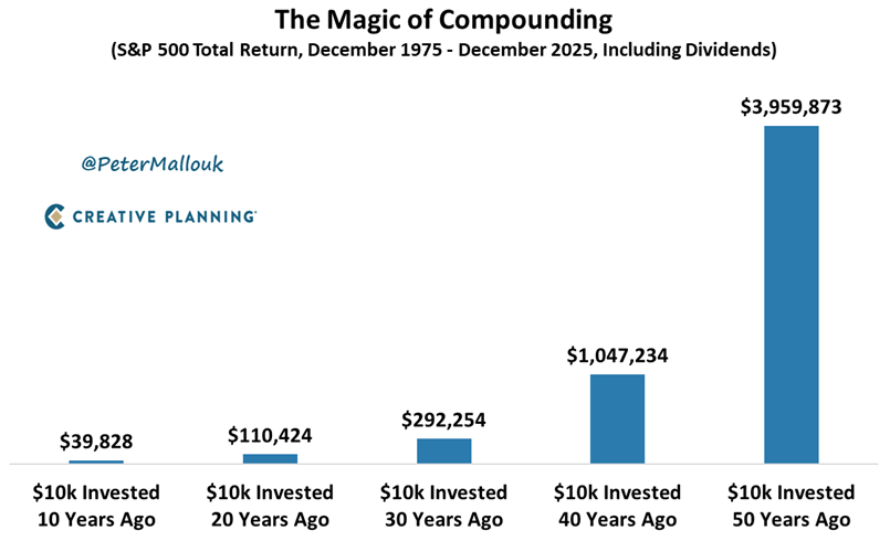 A "mágica" não está nos juros compostos, isso é pura matemática. A "mágica" está na desvalorização da moeda, que fez com que o S&P suba infinitamente.