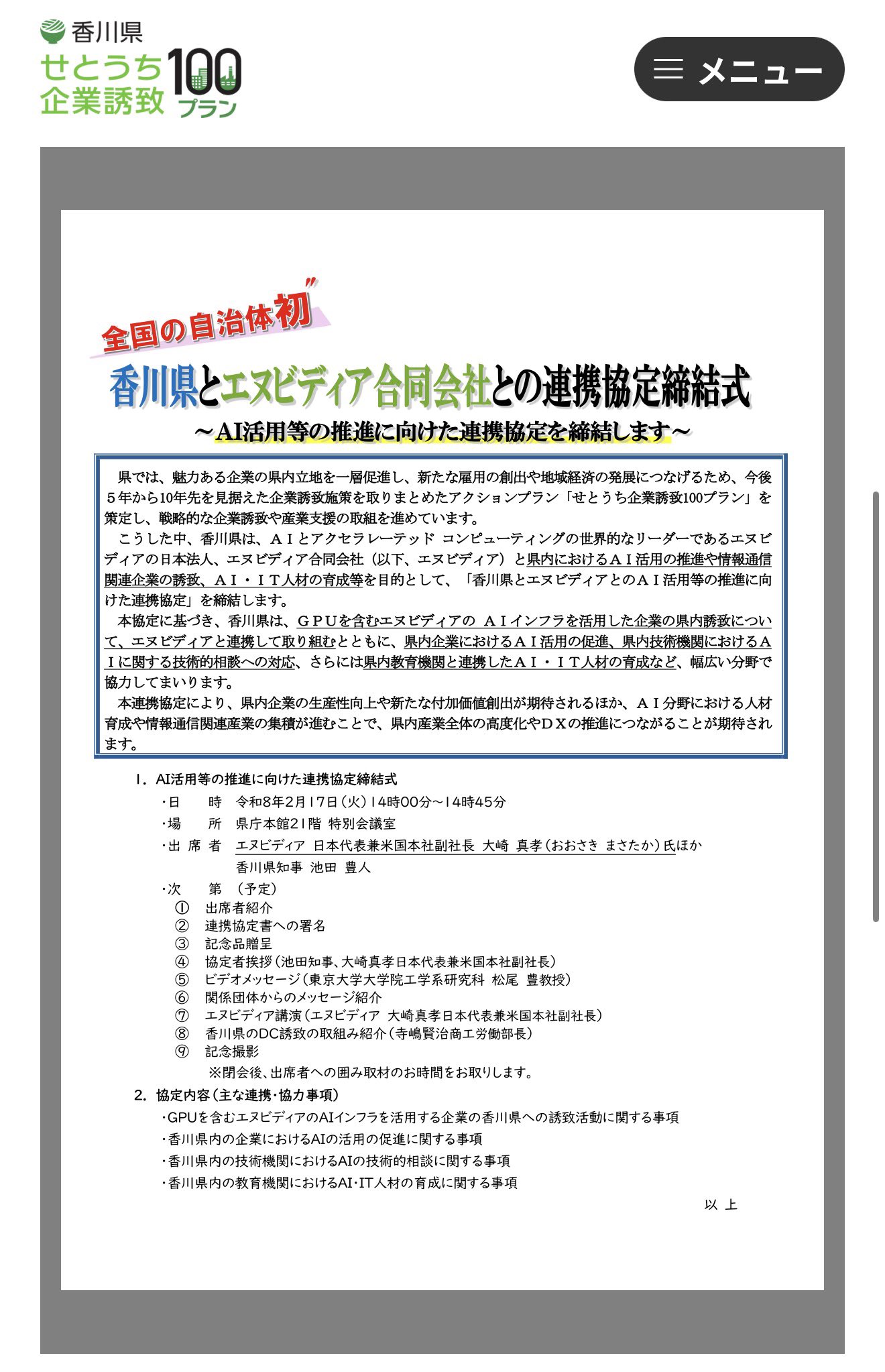 ikanoasi10 1 month ago 味する X (formerly Twitter)野生の男 (@yasei_no_otoko) on X香川県とNVIDIAの提携プレスリリース、思ったよりヤバかった