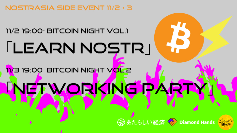 ビットコインと「Nostr」を学んで語り合おう!「NOSTRASIA」サイドイベント「BITCOIN NIGHT」11/2・3開催 | あたらしい経済