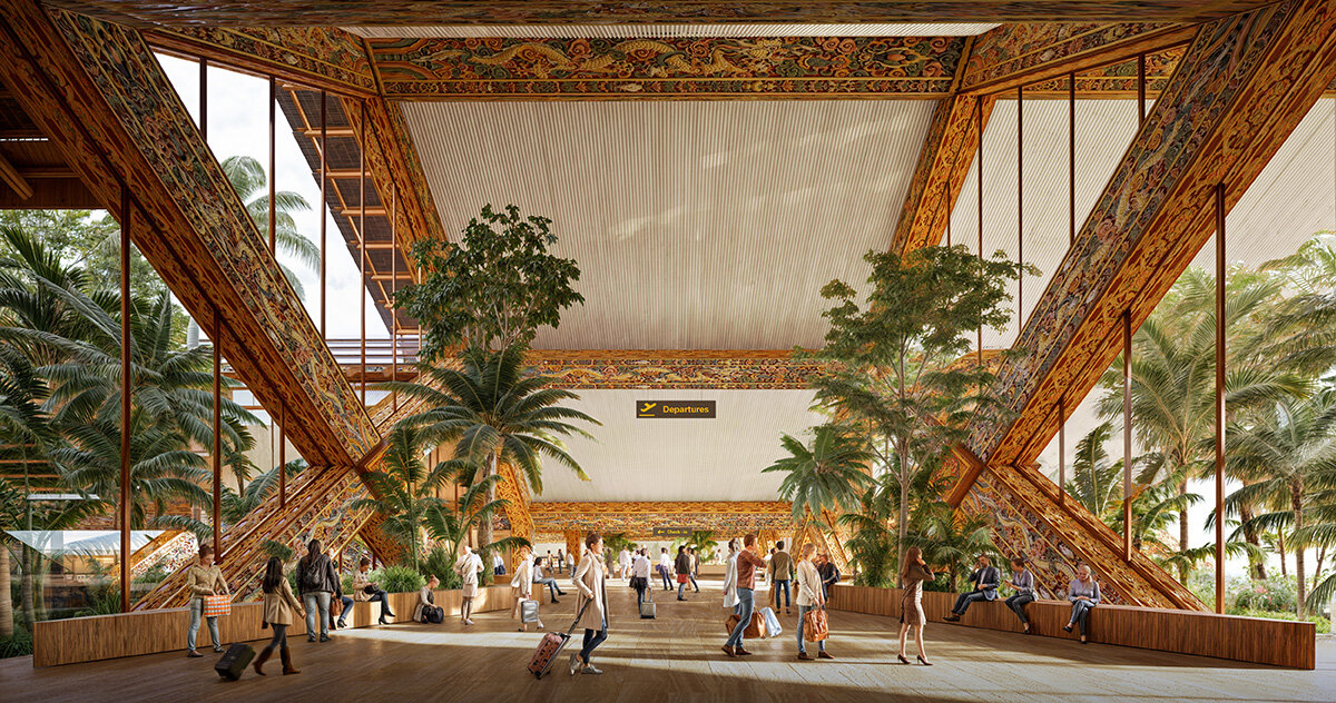 bjarke ingels group will work with local artists to create traditional, intricate carvings throughout the timber airport in bhutan.