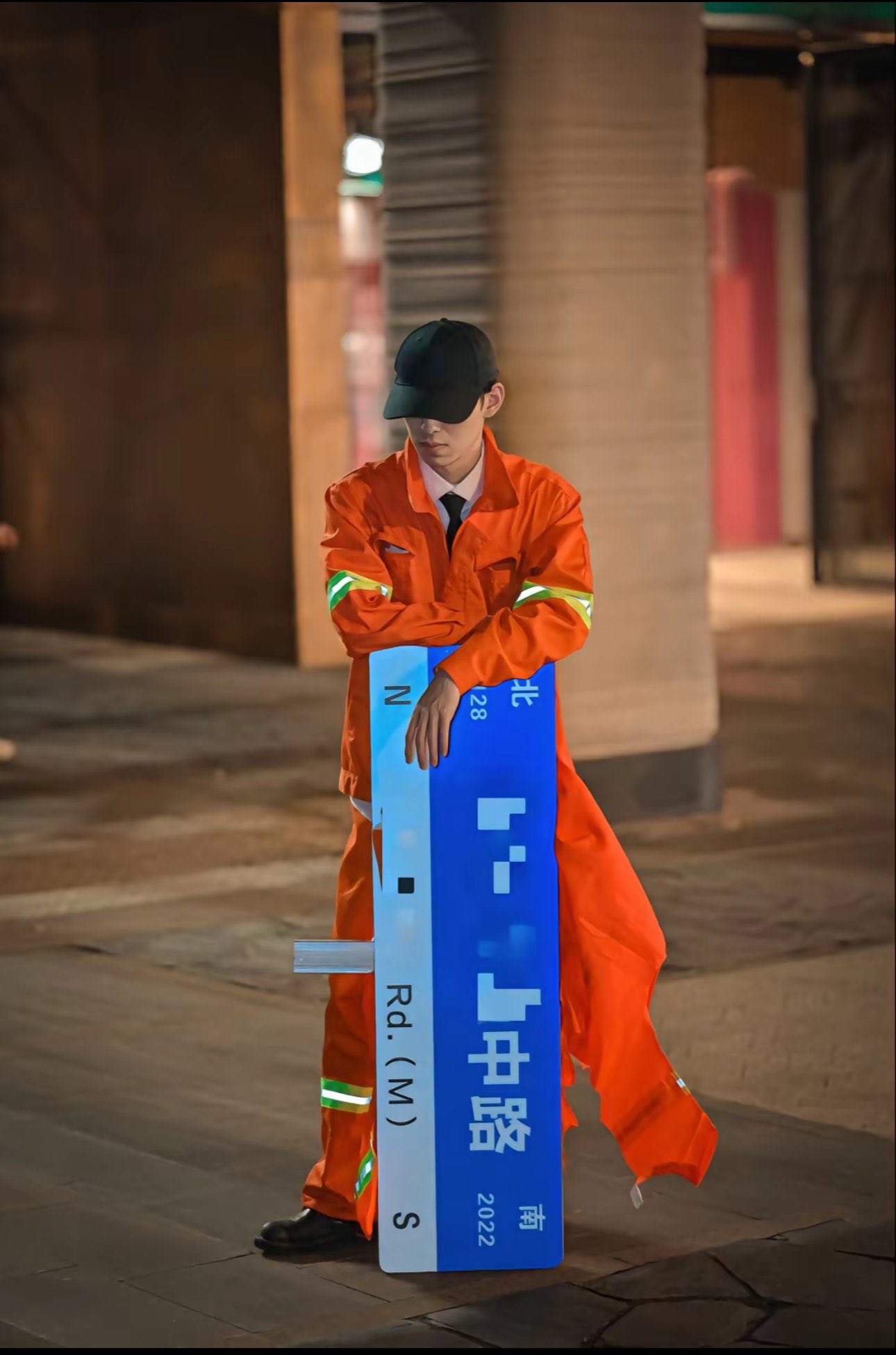10月28日深夜,上海一男子抱着“淮海中路”的路牌在大街上走,遭到警察盘问...