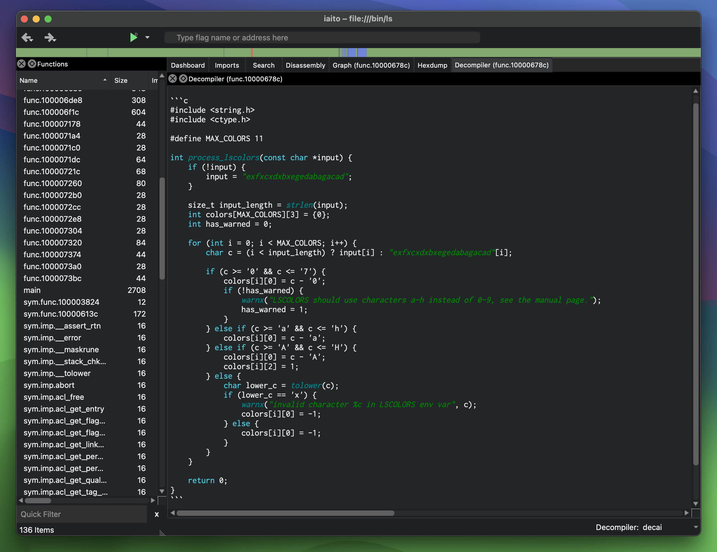 The decai decompiler is now also available in iaito!