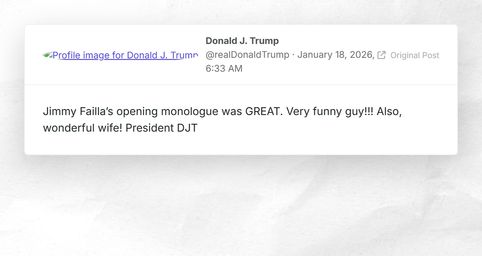 Trump's Truth - Latest Posts (RSS Feed)