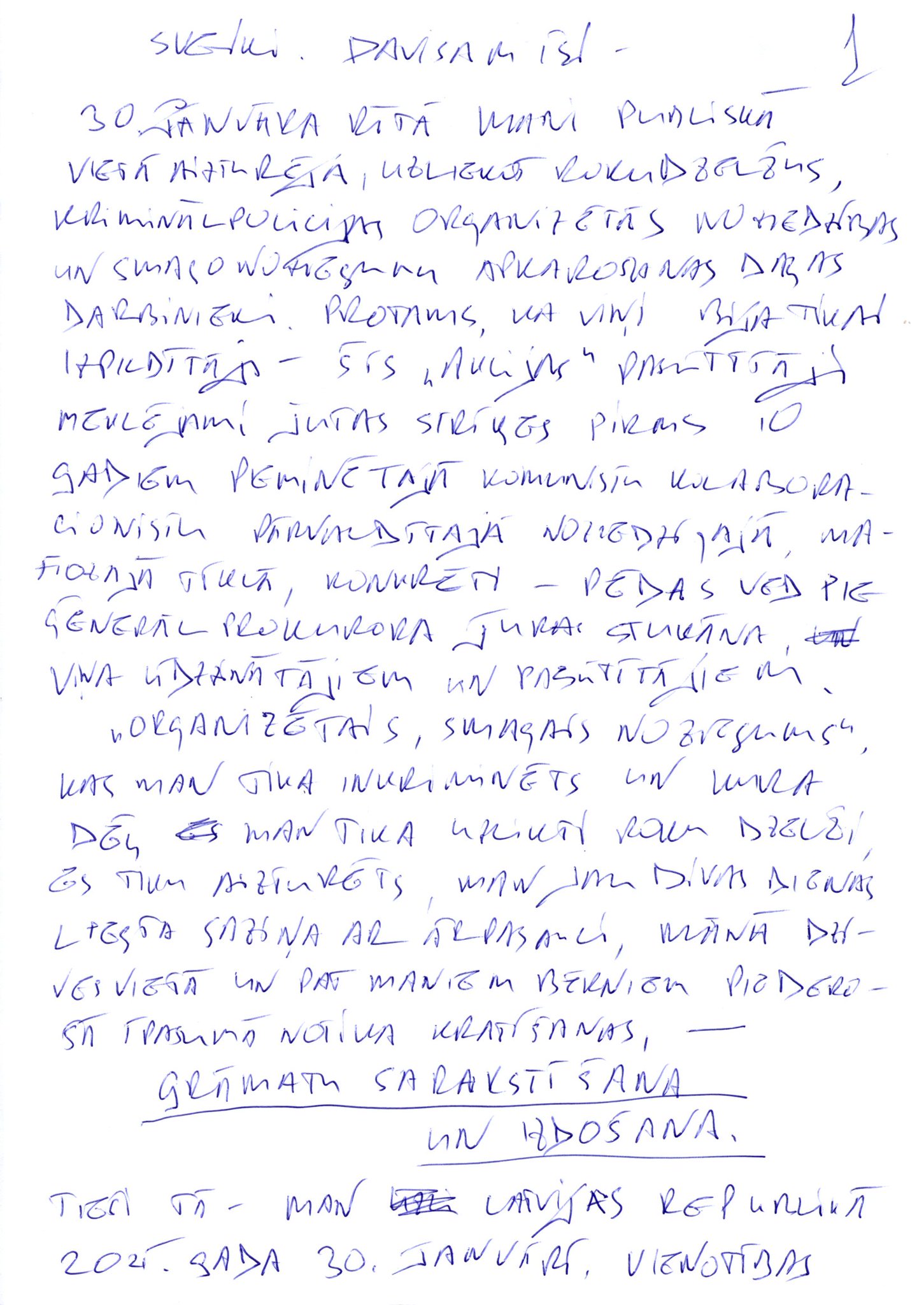 Publicējam viņa pirmo pašrocīgi rakstīto vēstuli no ieslodzījuma...