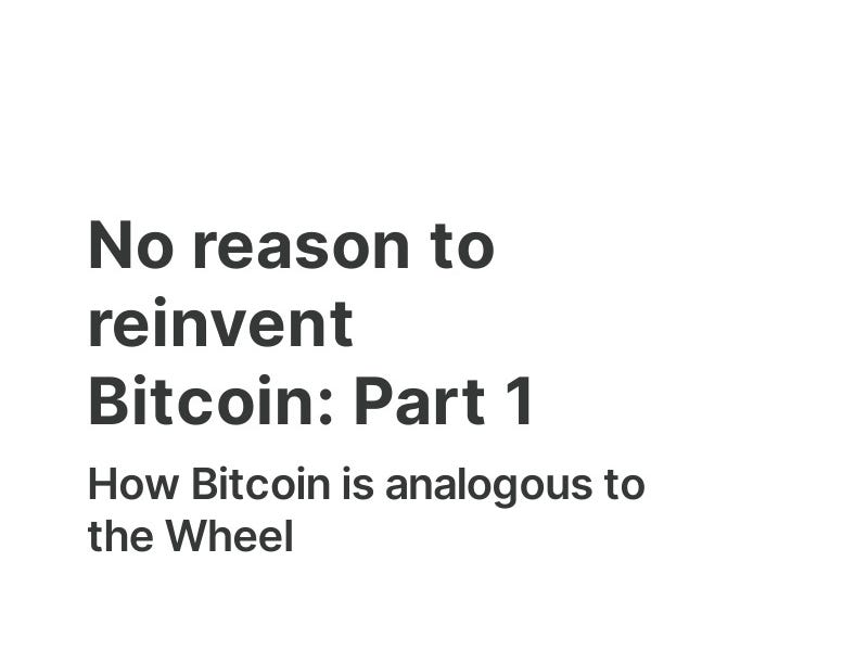 No reason to reinvent Bitcoin: Part 1 (of 2)