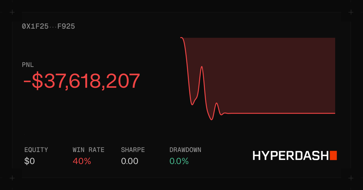 charliesurf charliesurf@NostrVerified.com 6 months ago he is 30 million usd in profit with a 20x long from $109k 0x1f25...f925 | HyperdashView trading performance, analytics, and portfolio for 0x1f250df59a777d61cb8bd043c12970f3afe4f925 on Hyperdash