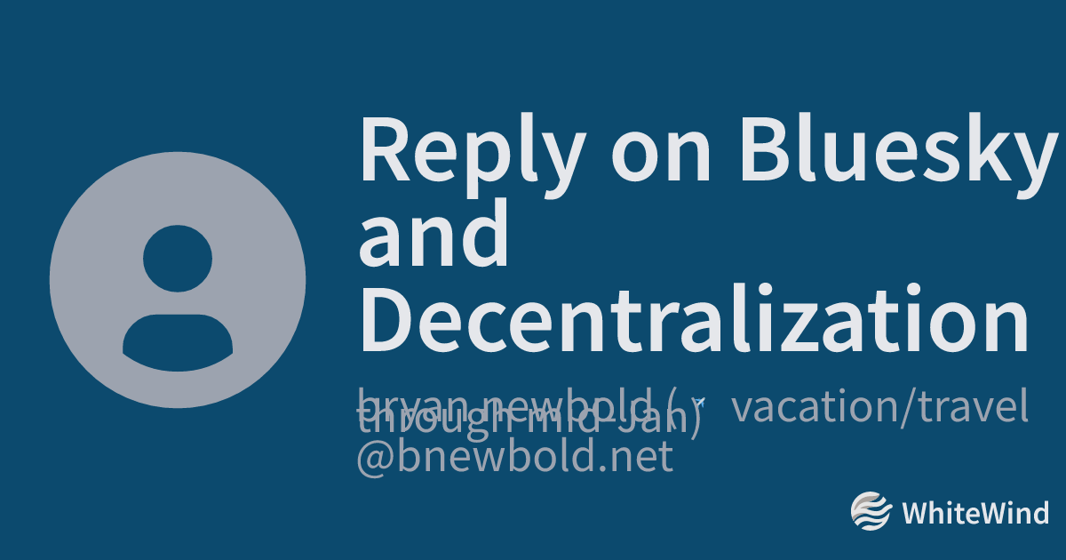 Reply on Bluesky and Decentralization | bryan newbold (✈️ vacation/travel through mid-Jan)