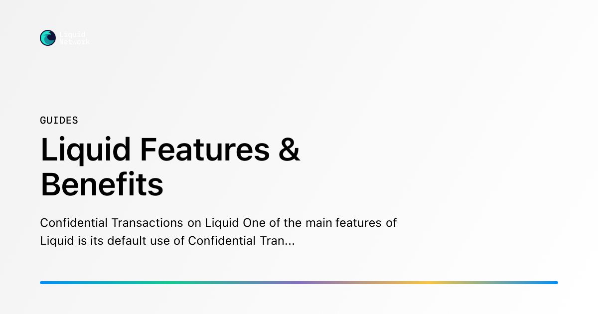 One of the main features of Liquid is its default use of Confidential Transactions. This privacy enhancing feat...