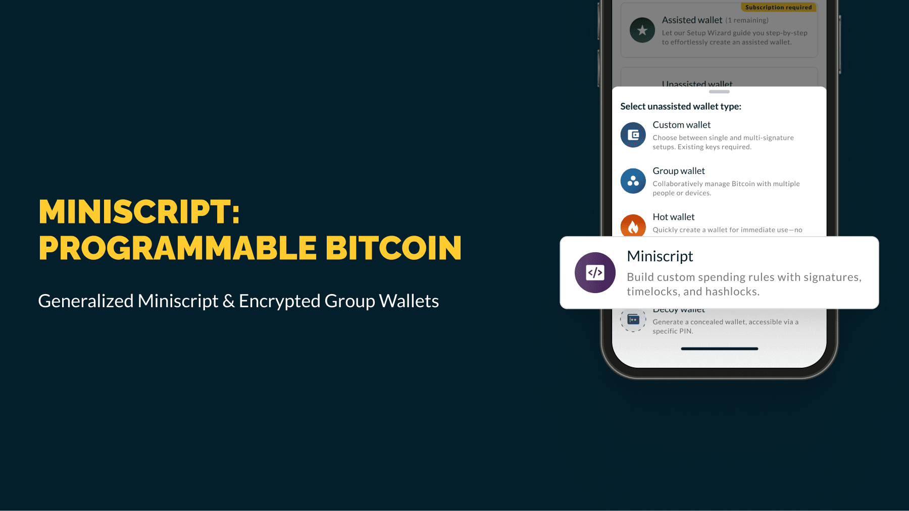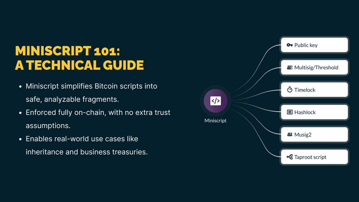 Miniscript structures these rules like Lego blocks, making advanced custody safe, simple, and verifiable.