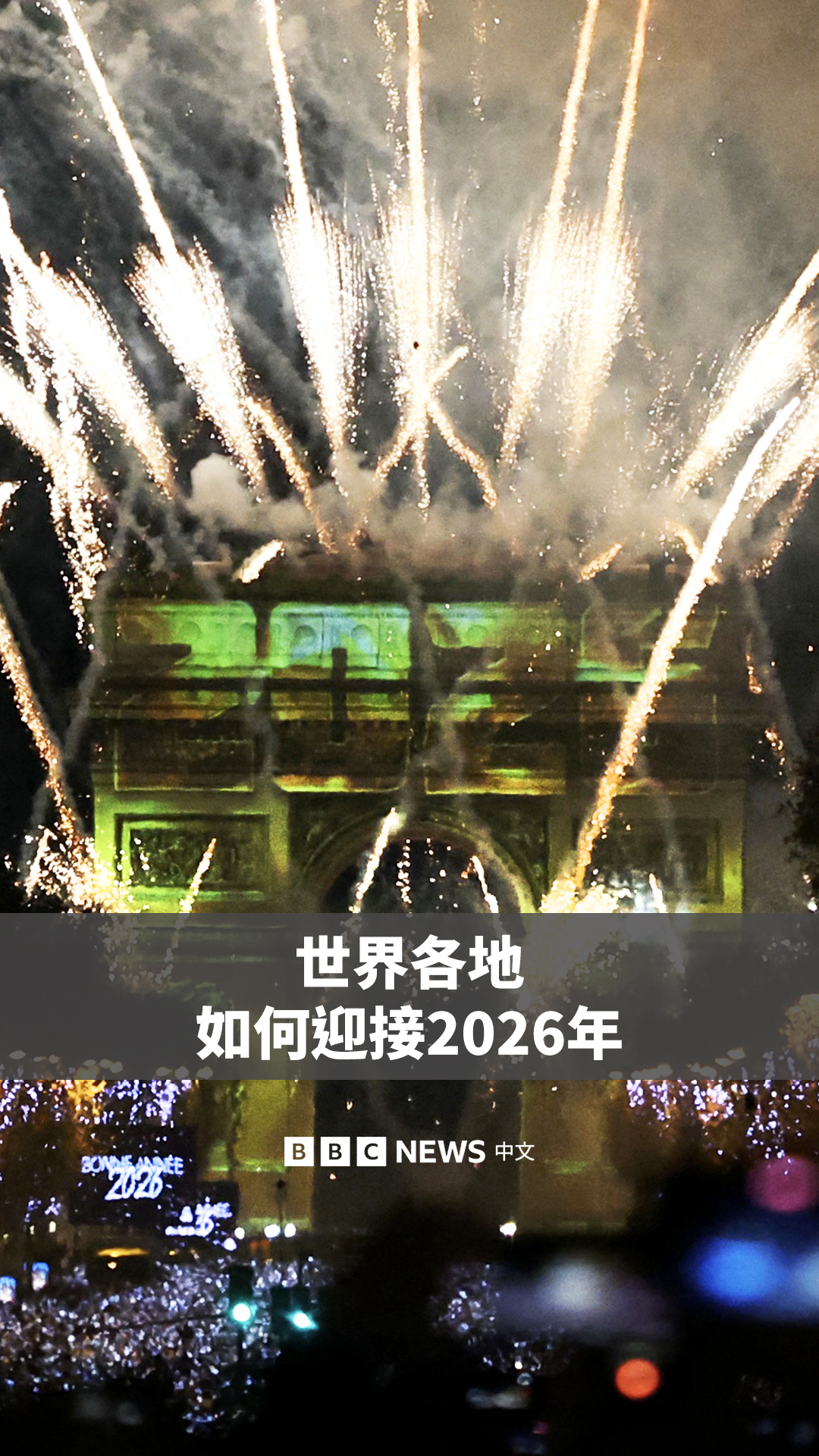 在全球各地,人们用绚丽的烟花和璀璨的灯光,迎来2026年。